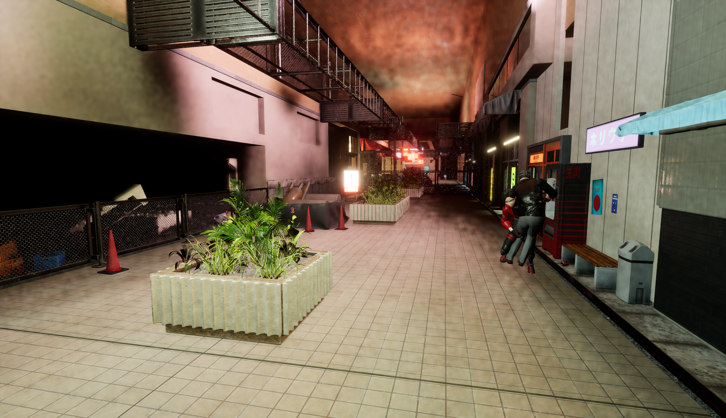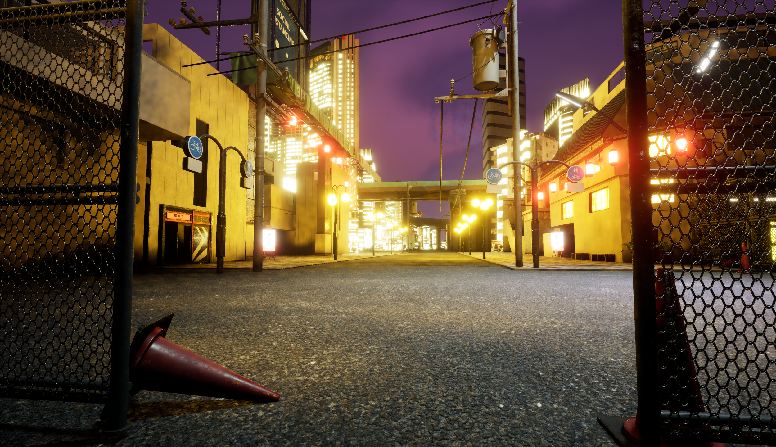 Right after successfully importing and getting all the textures sorted out, I sought out inspiration for an environment to place them in. I was looking at a lot of cyber punk game environment concepts at first, then I came across an asset within my Epic Games Library that redirected my focus. The Environment Modular Kit, by Kyrylo Sibiriakov, contained a Tokyo City pack which I used to layout the scene. My goal was to just have an interesting background placed for the camera itself.